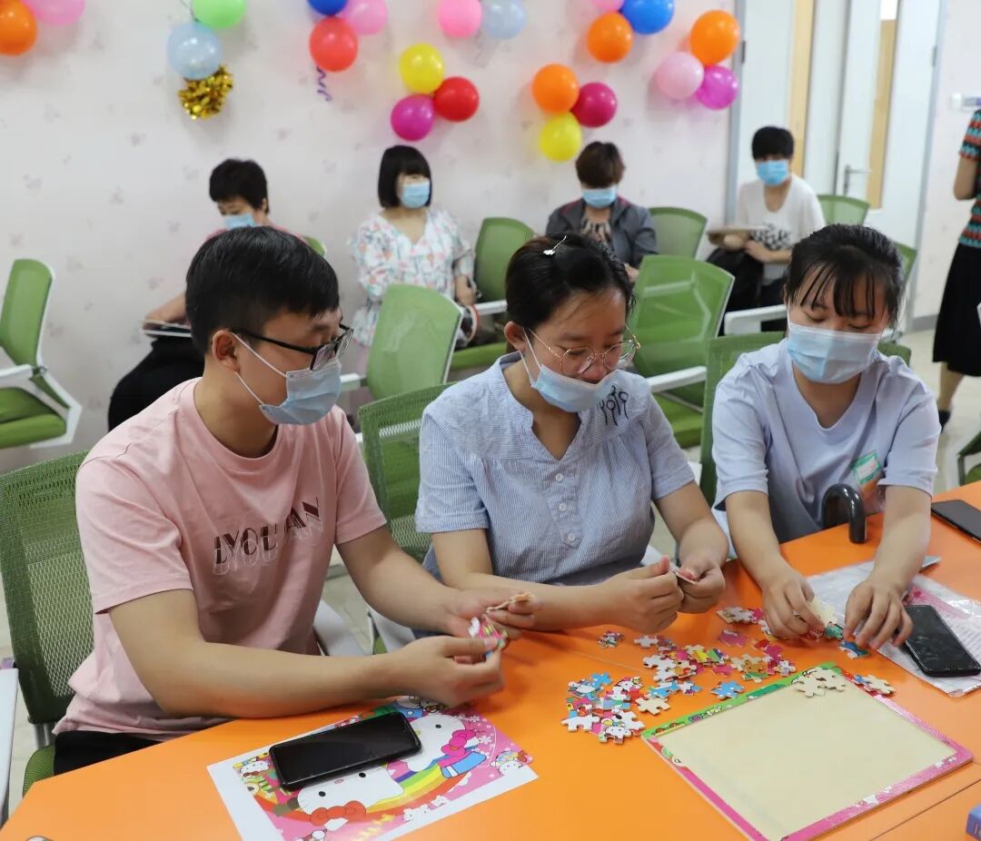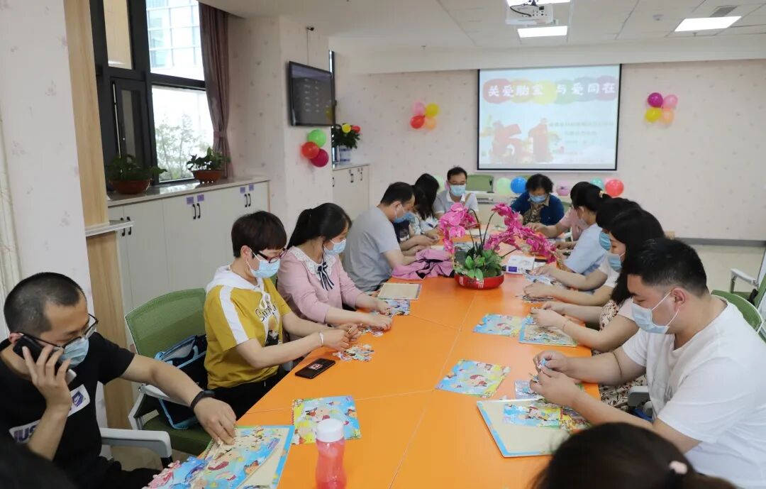 随着疫情防控工作取得阶段性成效,全面做好消杀工作前提下,医院在“六一”儿童节当天启动孕妇学校线下课程,特举办“关爱胎宝 与爱童在”大型沙龙活动,准妈妈、家属以及大宝共50余人参加,一起度过了一个美妙的欢乐时光。伴随着轻柔的音乐,开启“如何做胎教”知识讲座课程,孕妈妈们轻松的了解胎教的方法,时而抚摸一下腹中的宝宝,时而微闭双眼将深深的母爱传递给自己宝宝,整个课堂上充满了浓浓的爱的气息,甜蜜热温柔!课后进行手工拼图活动,通过动手动脑锻炼思维能力,促进宝宝生长发育,安抚孕期浮躁的心情,让孕妈妈身心放松,顺利度过孕期。