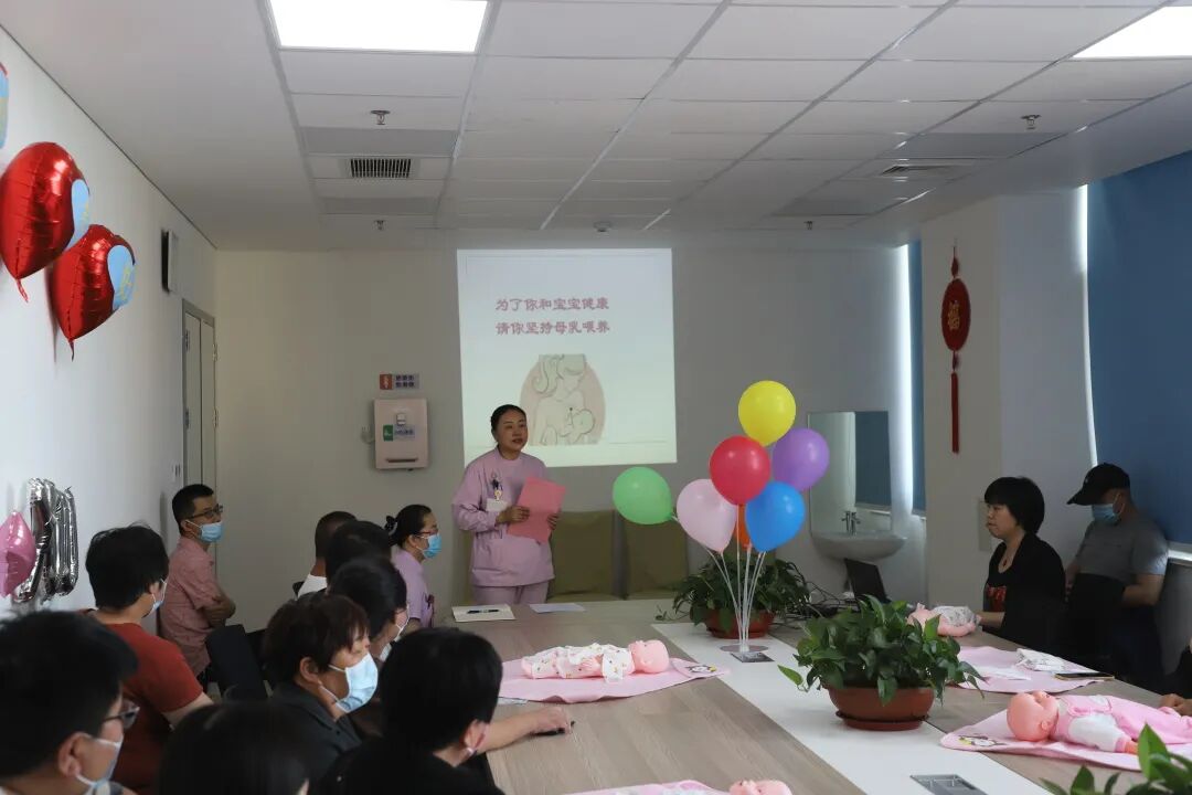 杏园院区产科也组织了一场别开生面的母乳喂养健康教育宣传活动,医院孕妇学校校长王少坤通过专业教具、图文并茂和通俗易懂的语言,从母乳喂养的好处、哺乳的正确姿势、哺乳期妈妈的营养和饮食,为准爸爸准妈妈们讲解了关于母乳喂养的相关知识,呼吁社会、家庭关注和支持母乳喂养,家庭参与式母婴照护,为母婴健康打下良好的基础。在新院区产科病房医生办公室举办了母乳喂养专题讲座,新妈妈新爸爸穿脱衣服、更换尿布、抱孩子技能大比拼,大家的参与热情积极高涨,纷纷表示此次活动受益良多,对母婴照护有指导意义!