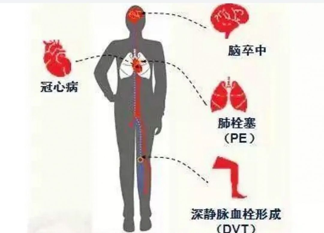 随着血栓越长越大,会把血管堵死,相应部位的组织就会缺血缺氧最终坏死,血栓堵一处,牵连一大片,甚至导致整个器官瘫痪。脱落下来的栓子随着血液循环跑到全身各处去捣鬼。
