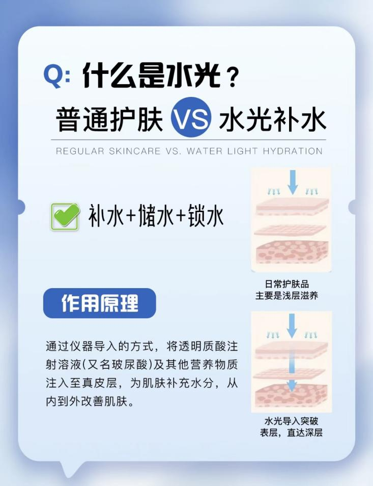 “水光针”是一种专业、正规的医美疗法,可以改善肤质,改善肤色暗淡,改善细小皱纹,改善换季皮肤干燥。