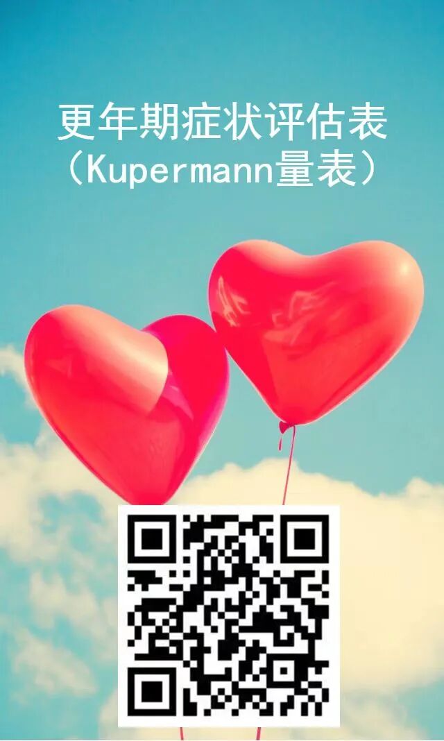 目前,Kupermann量表是目前用于评价女性是否存在更年期相关症状以及判断症状严重程度的常用量表。根据妈妈的症状识别下面二维码做个测评,你的妈妈更年期症状评分多少,如果得分小于6分属于正常,6-15分为轻度,16-30分为中度,大于30分为重度。轻度症状者一般不影响日常生活,不需要治疗,只需要一般饮食生活调整就好。对于测评为中度以上者,建议到专业的更年期保健门诊就诊咨询,了解并评估身体状况,必要时采用绝经激素治疗,缓解更年期症状的同时,预防心脑血管疾病、骨质疏松、老年痴呆等远期并发症的发生。