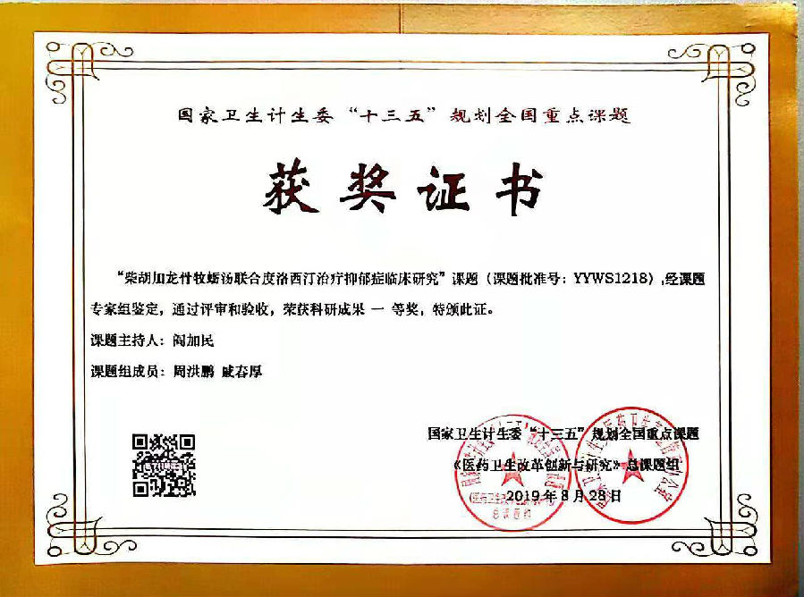 由淄博市妇幼保健院心理科主任阎加民主持的国家卫生计生委“十三五”医药卫生规划重点课题“医药卫生改革创新与研究”(课题批准号:NHFPC102018)的子课题“柴胡…