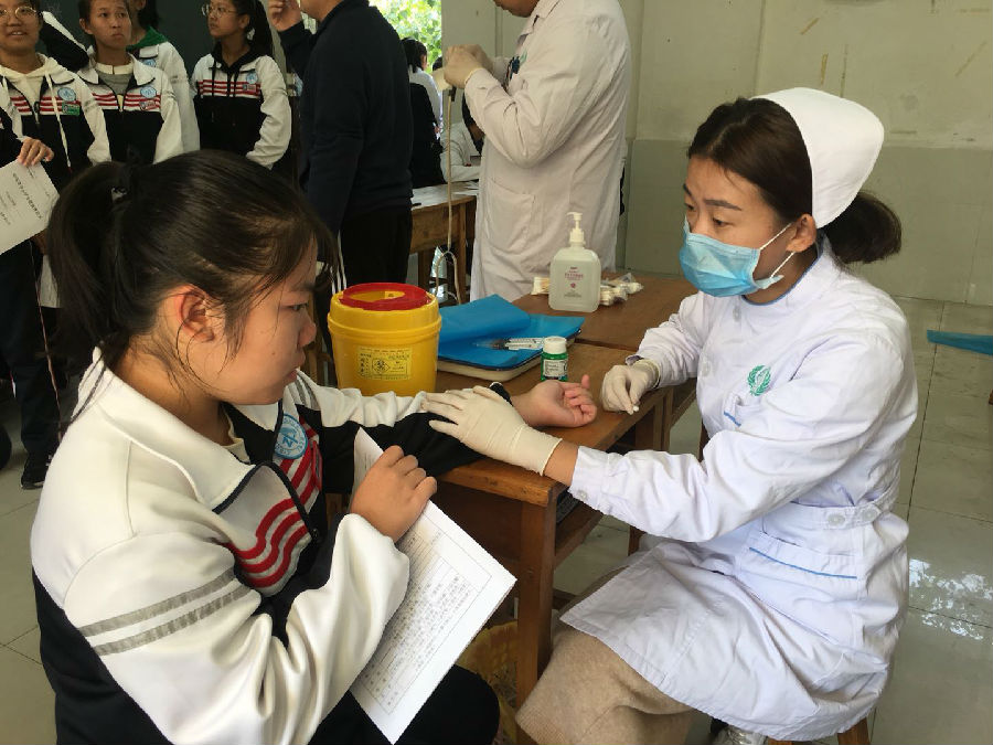 市妇幼保健院为市属中学高一新生进行结核菌素皮肤试验