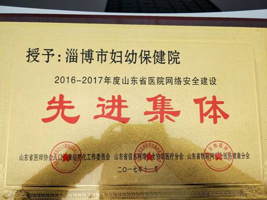 淄博市妇幼保健院荣获2016-2017年度山东省网络安全建设先进单位荣誉称号