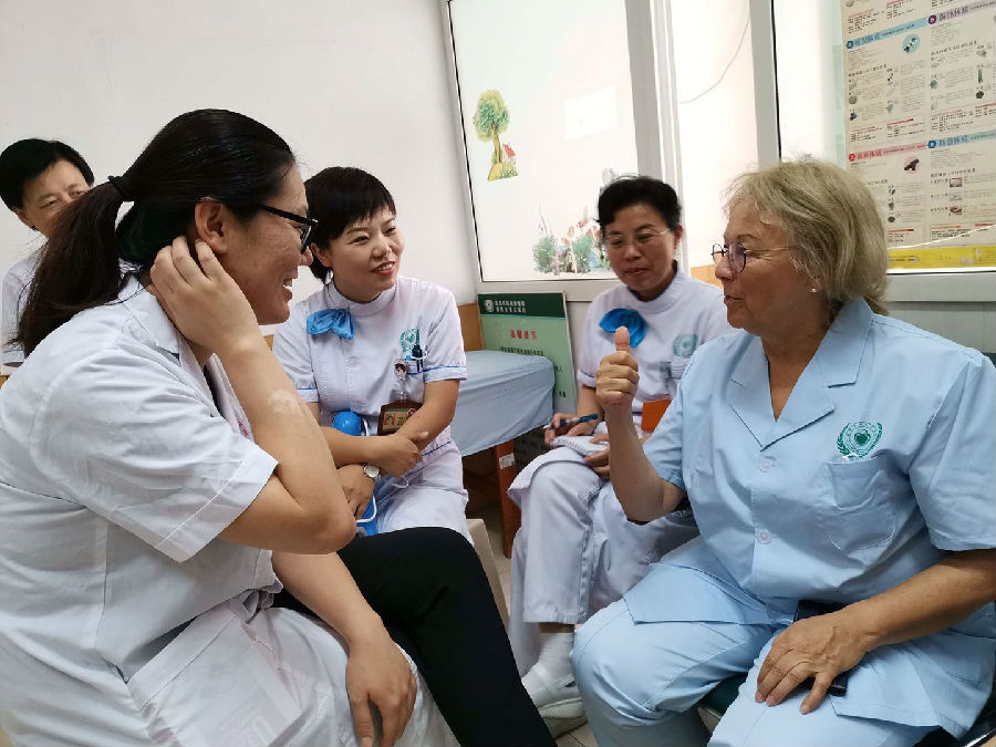 5月31日是德国高级护理专家Dietlind女士来到淄博市妇幼保健院的第5天,在儿科科护士长于文凤及科室相关人员的陪同下来到儿科门诊指导工作传授经验。68岁Dietlind女…