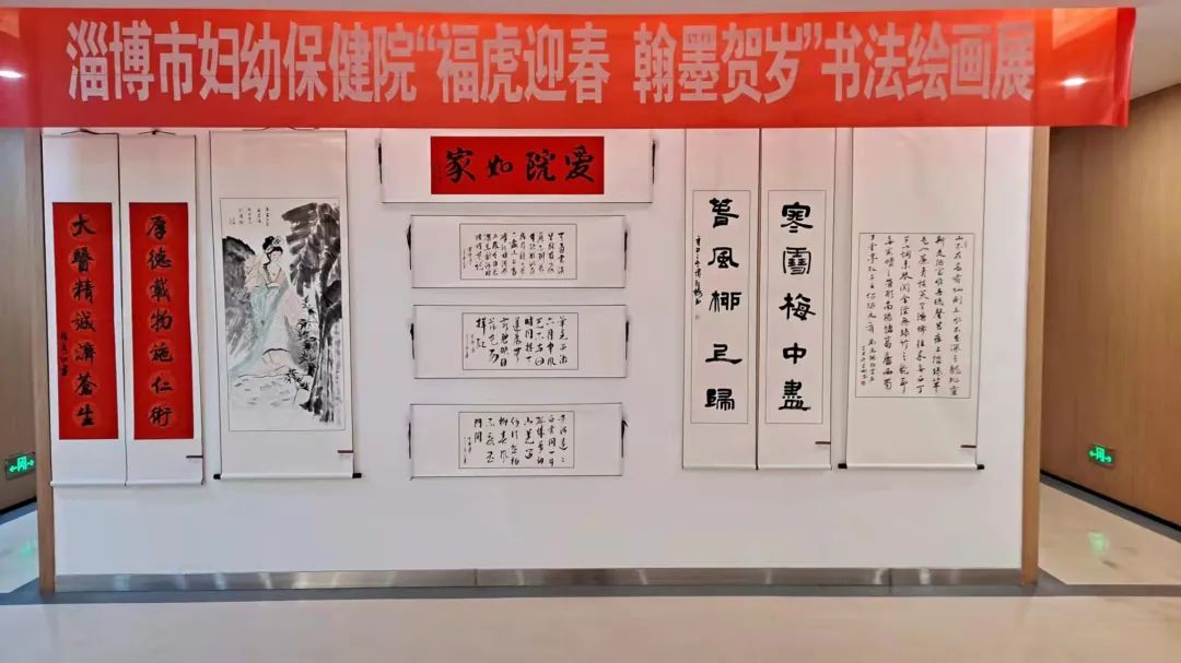 2022年1月19日,淄博市妇幼保健院工会举办的“福虎迎春翰墨贺岁”作品展在九号楼学术报告厅前展出,书画作品共47幅,其中书法作品33幅,绘画作品14幅。