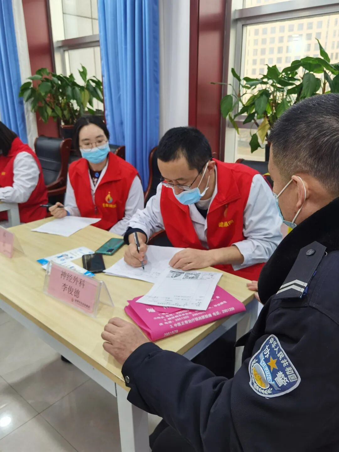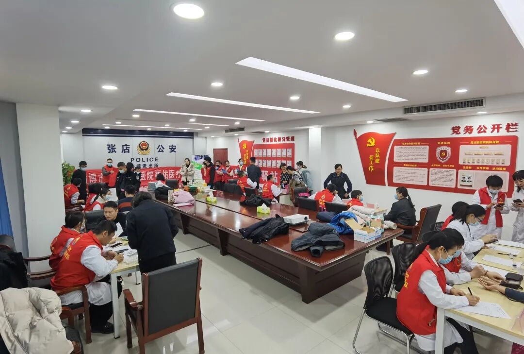 1月8日上午,为庆祝第二个“中国人民警察节”,淄博市妇幼保健院行政二党支部组织福佑医疗队联合淄博宏仁堂大药店在节前为张店区房镇镇辖区派出所民警送健康,进行查体义诊活动。这是行政二党支部与淄博市公安局张店分局房镇派出所党支部签署结对共建协议后开展的首次义诊活动。