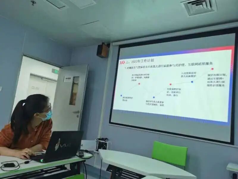 随后,科室六个护理学组组员代表从工作开展、专科培训、取得成效及下一步工作计划等方面逐一展开汇报,管路护理组计划利用Meta分析的科研思路寻找解决高危药物外渗的最佳防范及处理方法;母乳喂养组从医生、护士、医院、家属、政策角度提出早产儿住院期间的母乳喂养模式;仪器管理组对新开展的经皮二氧化碳分压测定、磁定量分析仪等新业务做了汇总分析,提出改进方法;院感组对院感工作细节提出更加具体的要求及落实措施;精神发育支持护理组从皮肤损伤角度提出疼痛管理的方案;家庭参与式护理组计划利用微信平台与家庭参与护理相结合方法对BPD患儿实行院外延伸护理等重要举措。