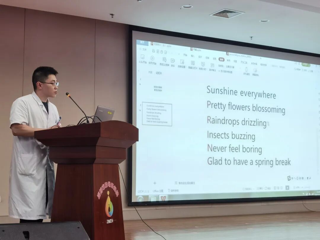 外科周鑫、检验科的陈虹分别作为青年才俊代表及青苗人员代表进行表态发言,他们表示英语是一个工具,是世界了解中国的窗口,也是中国通往世界的桥梁,他们将与全体学员一道,珍惜这次学习的机会,严格要求自己,通过本次训练营学好英语口语,为医院的学科建设及外事发展做出自己的贡献。