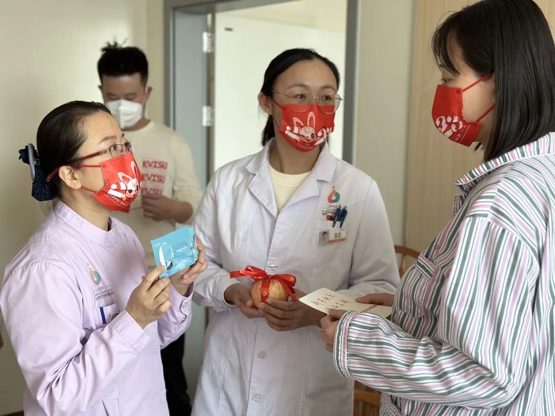 为了让住院孕产妇感受到节日的欢乐,医护人员便利用闲暇之余的时间,挂红灯笼、贴窗花……精心布置病区,营造节日祥和氛围。病区里浓浓的年味扑面而来,热烈的新春气氛让产妇在病房里也感受到了过年的热闹。在产休一体病区,参与的党员们慰问在院的孕产妇和家人,询问母子的身体状况,指导康复知识,同时为产妇及家人送上包装精美的平安果和新春贺卡。新生命的诞生是一个家庭最好的新年礼物,为了保障小天使平安顺利的降临,产科医护人员时刻坚守在工作岗位上,为患者提供一系列暖心服务。