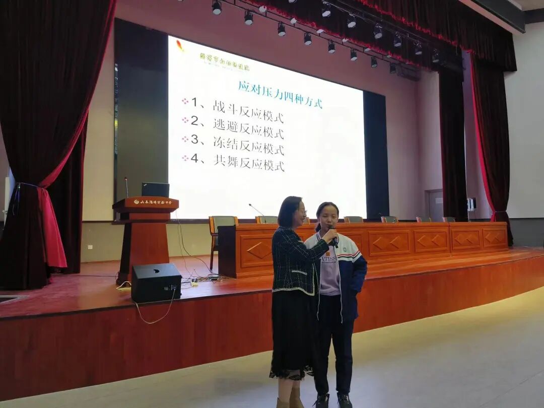 王莹通过雨点变奏曲的一个热身活动,瞬间拉近了与同学们的距离,分享了工作中遇到的青春期典型案例,得到同学们的共鸣,有针对性的提出了青春期如何解决烦恼,缓解压力的措施,让同学们受益匪浅。
