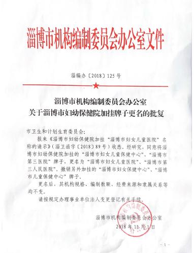 11月1日,淄博市机构编制委员会批复,同意淄博市妇幼保健院加挂“淄博市妇女儿童医院”牌子;11月12日,由淄博市妇幼保健院联合28家成员单位牵头成立淄博市妇儿专科联盟,包含妇科联盟、产科联盟、儿科联盟、新生儿科联盟和生殖医学联盟五大联盟。