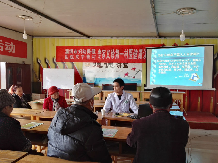 淄博市妇幼保健院高度重视“第一村医”工作,把“助力‘第一村医’,落实健康扶贫”做为医院的重点工作来抓,对医院下派的三名“第一村医”提出了高标准和严要求,她们干劲实足,积极了解当地老百姓的就医需求。驻区辛曹村“第一村医”张晓冬驻村两周,发现就诊人群中老年人高血压发病率高达80%以上,且就医观念淡漠、服药不规律、查体不及时。张晓东及时将该问题向医院做了详细汇报和反馈。针对这一情况,医院经研究决定,于12月11日下午选派内科主任医师王勇君、医务科王军及护士田哲到高新区四宝山辛曹村,助力“第一村医”张晓冬开展高血压防治健康知识讲座,并为当地老百姓义诊。