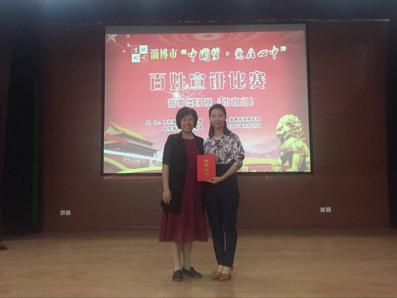 6月28日上午,淄博市“中国梦.党在心中”百姓宣讲比赛决赛(故事类)在淄博技师学院举行,淄博市妇幼保健院儿科医师韩瑛参加比赛并获得二等奖。