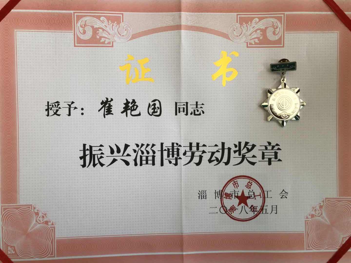 淄博市妇幼保健院生殖医学中心主任崔艳国于2018年5月被淄博市总工会授予“振兴淄博劳动奖章”。