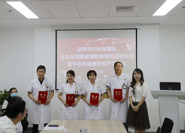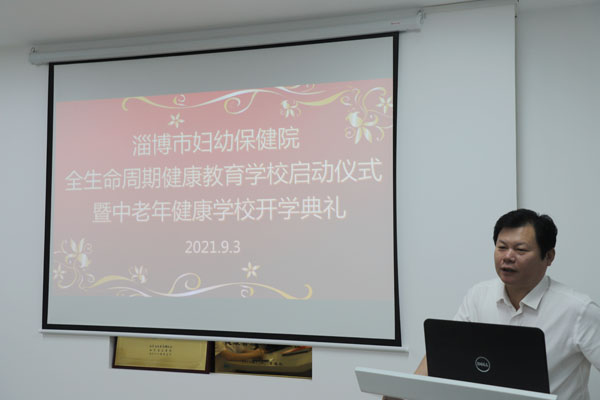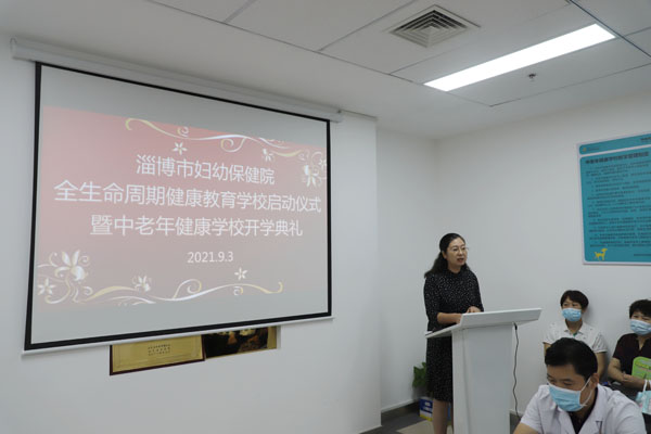 为深入贯彻“预防为主”的卫生工作方针,认真落实“健康中国行动计划”,坚持科学性、群众性、实用性的健康教育基本原则,将健康通过学校教育方式进行传播,关注全生命周期健康全过程,引导群众树立正确健康观念,养成良好的健康行为和生活方式,促进全民健康发展。9月3日淄博市妇幼保健院举办全生命周期健康教育学校启动仪式暨中老年健康学校开学典礼。启动仪式由院长叶大勇主持,党委书记张立新致辞,副院长李娟宣读全生命周期健康教育学校实施方案,健康教育科科长宋丽娜为9月份在校授课专家颁发聘书及胸牌,健康教育科业务主任、孕妇学校校长王少坤做办学经验分享,健康管理中心主任、中老年健康学校校长徐玲作表态发言。