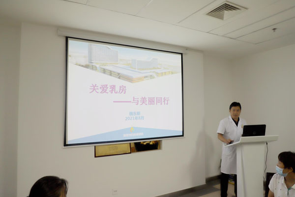 启动仪式结束后,外科主任魏东新以《关爱乳房健康》为题作为学校开学第一课,通过引用实例讲解乳房常见问题、如何进行乳房保健,课堂讲解深入浅出、通俗易懂,与到校学习的学员进行沟通交流,拉近了专家与听众的距离。学员们纷纷表示受益匪浅,要把所学知识利用起来,告诉自己身边的人,让更多的女性朋友做好预防,远离乳腺疾病。