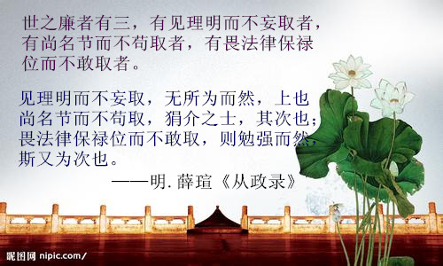 【廉洁妇幼153】世之廉者有三,有见理明而不妄取者,有尚名节而不苟取者,有畏法律保禄位而不敢取者。