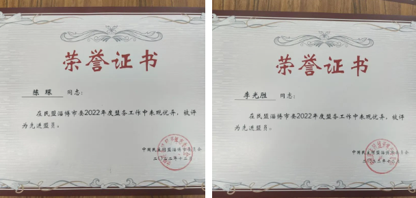 民盟淄博市三院支部5人获民盟淄博市委会表彰
