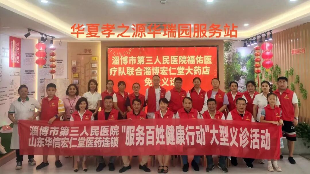 8月26日,淄博市第三人民医院福佑医疗队联合民盟淄博市委会和山东华信宏仁堂医药连锁有限公司,走进高新区华瑞园社区开展大型义诊活动。